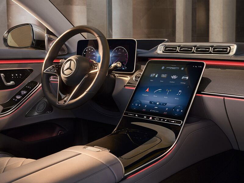 The standard 12.8-inch OLED touchscreen is the command center of the Mercedes-Benz User Experience. It could also be as easy as saying “Hey, Mercedes” and telling your sedan exactly what you need. This system helps keep you connected with these technologies: