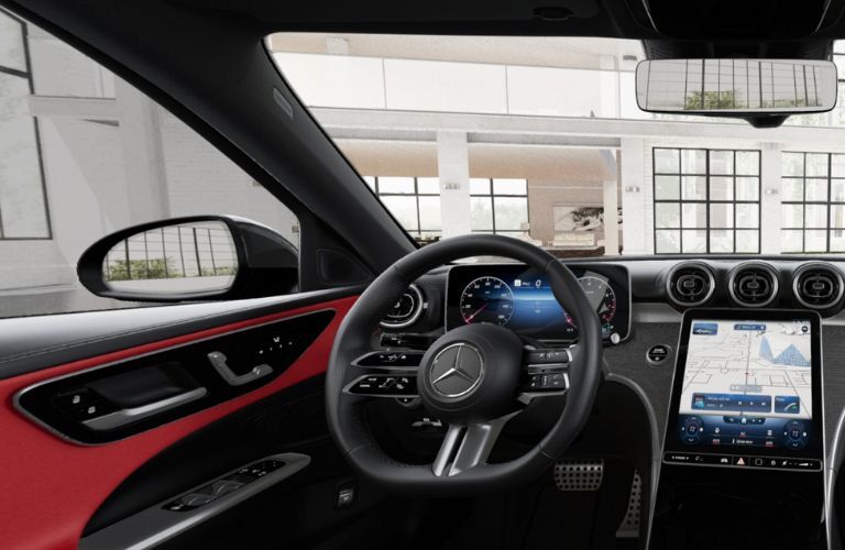 Several Mercedes-Benz models offer the opportunity to pair a white exterior with a red interior, depending on trim level and customization. The Mercedes-Benz C-Class Sedan frequently offers this combination, delivering compact luxury with a sporty edge. Its red interior enhances the modern cockpit design and creates a more engaging driving atmosphere. The Mercedes-Benz E-Class Sedan also presents this color pairing on select trims. Here, the red interior adds dramatic contrast to the refined cabin, complementing advanced technology and premium materials. For drivers seeking performance-inspired luxury, certain Mercedes-AMG models may also feature white paint options paired with red leather upholstery, depending on configuration. Additionally, some Mercedes-Benz SUVs, such as the GLC or GLE, may offer red interior selections alongside white exterior colors. These models combine versatility with bold interior styling, making them ideal for drivers who want both presence and practicality.